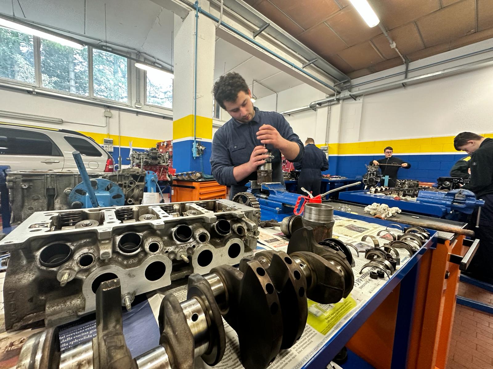 Il Corso offre un laboratorio di meccanica attrezzato con postazioni di lavoro per ogni studente, con svariate tipologie di motori, cambi, e componentistica, permettendo a ogni studentessa e studente di conoscere al meglio le più differenti situazioni lavorative a cui dovrà far fronte nel suo futuro professionale.